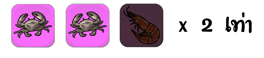 การแทงลูกเต๋าลูกเดียว ออก 2 ลูก คือ ผลลูกเต๋า 3 ลูก ออกถูก 2 ตัวที่แทงไว้ จะได้ ×2 เท่า ของชิปที่เดิมพัน